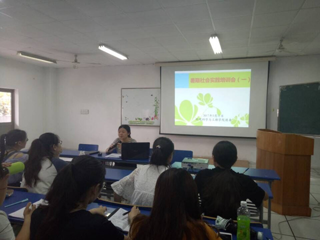 (本网讯/环工学院 石祥乐)5月31日,环工学院分团委在实验楼201教室组织召开了暑期社会实践专题培训会。培训会分为安全员培训与宣传员培训两部分,由2015级辅导员陈亚力老师担任主讲,2017年暑期社会实践的20支本科生团队队长及团队主要成员参加了培训会。