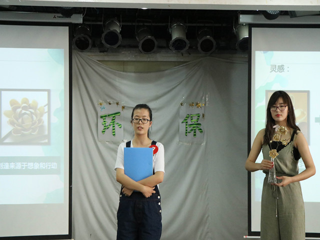 比赛自开赛以来收到400多件作品,经初赛遴选,共有10份作品从中脱颖而出,进入本次决赛。十组选手依据抽签顺序依次上台解说作品,“开心花开”用果核弃物传递出“微笑”的理念;“活在蔚蓝”用瓶盖拟造海洋生态现状,阐述治理污染,推进海洋健康发展的重要性;“寻绿”在雾霾生活中追寻自然最本真的那一抹绿色。最终,作品“黑与白—新时代下大气及水污染现状”斩获本次大赛一等奖。