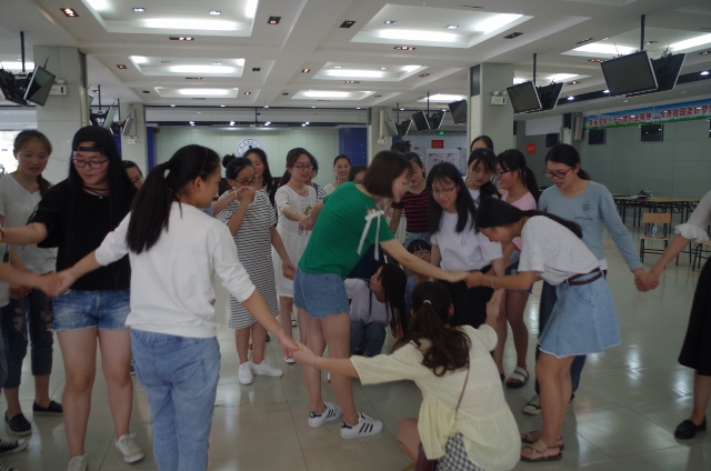 5月21日下午,食品专业班级部分学生在大学生活动中心二楼就业报告厅开展了心理健康团体辅导活动,本次活动由辅导员沈艳红老师主持和组织。活动首先进行的是“同舟共济”和“007”游戏,为了让所有的同学的脚都踩在纸上,他们牢牢的抓紧彼此,齐心合力,共同完成。其后进行的是“一块五毛”游戏,男生为一块,女生为五毛,通过抱团来集齐主持人报的钱数。最后一个游戏是“牵起你的心心结”,所有人围成一个圈,每个人记住自己左右手拉的人,然后打乱这个圈,在打乱的状态下牵到之前左右手的同学,然后通过钻、跨、转圈等方式解开这个结。在解结的过程中同学们遇到的许多困难,也一度认为这是一个死结,但是他们不放弃,耐心研究,一点一点将结解开。在解开的那一瞬间,所有人都在鼓掌、呐喊。活动中,同学们默契的配合,齐心协力的努力,使活动圆满结束。
