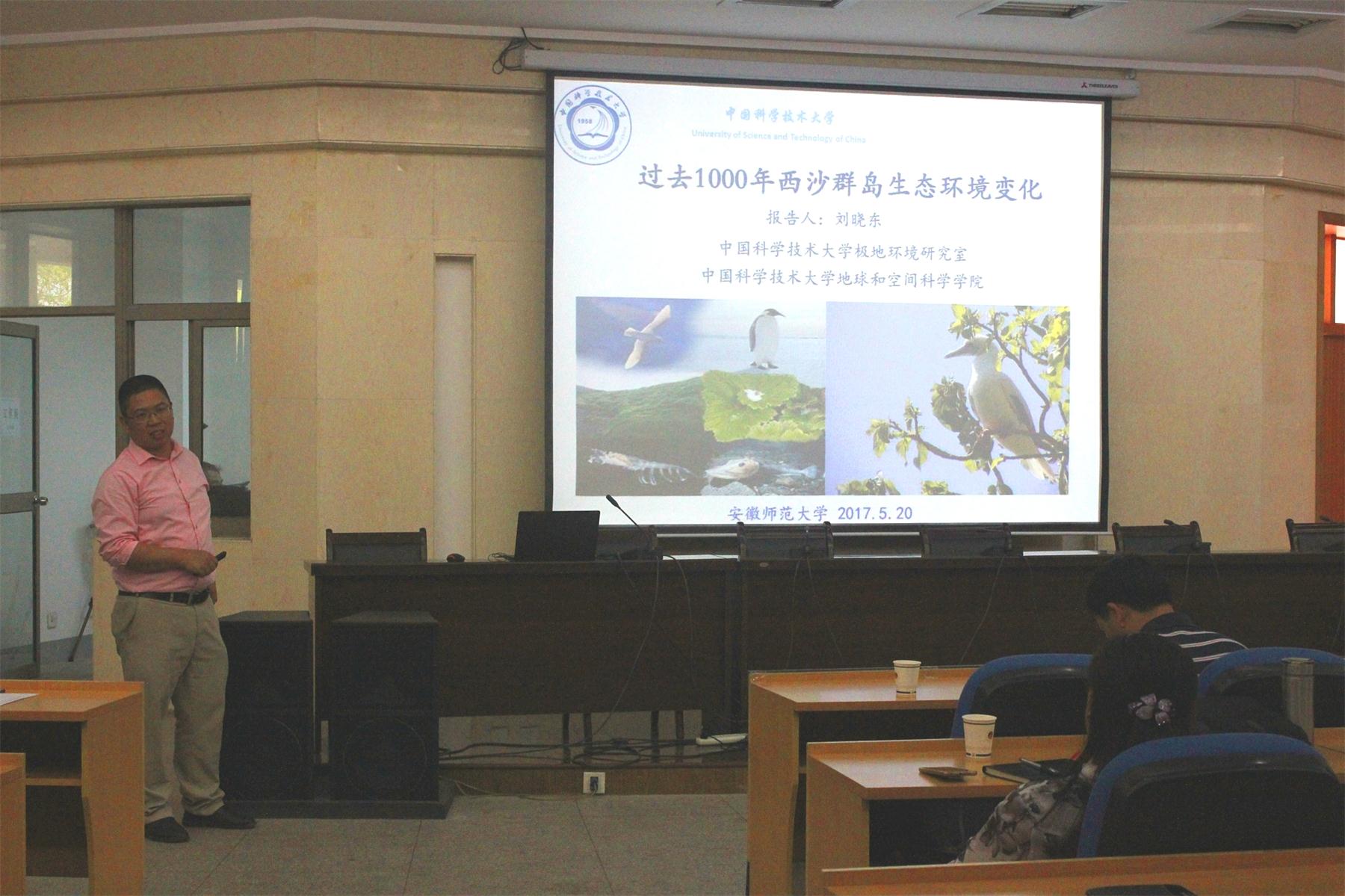 5月20日下午,在财务处二楼视频会议室,中科大极地环境研究室副主任刘晓东教授应环工学院邀请,作了题为《过去1000年西沙群岛生态环境变化》的学术报告,报告由科研副院长杨如意主持。