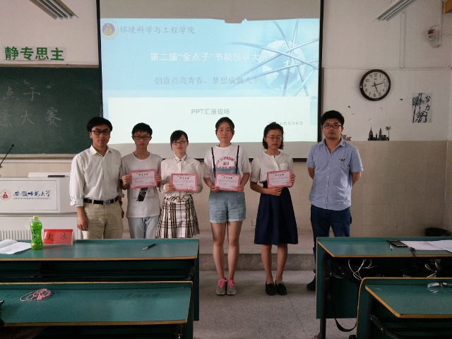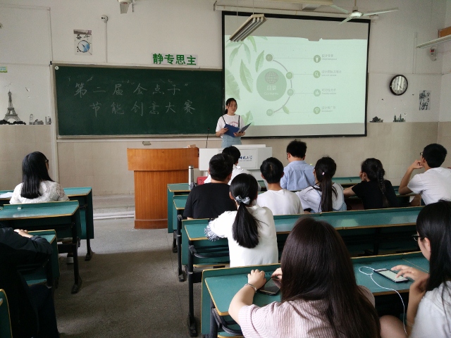 (环工学院 文/石祥乐 李霞光 图/余孟雅 田嘉铭)创新点亮青春,梦想成就人生。为引导学生树立创新意识,提升学生创新能力,环工学院于5月10日下午在教学楼2030405教室举办“金点子”创意节能大赛。2016级环境工程专业班主任万锐、食品质量与安全专业班主任赵冰担任评委,参赛代表和部分16级学生参加比赛。
