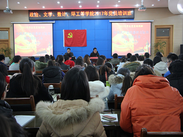 本网讯(环工学院分党校)3月25日下午,在圆形报告厅二楼,马克思主义学院副教授李祥兴老师应邀为环工学院、马克思主义学院、数计学院、文学院学生党员教育培训班作主题为“中国共产党的最终目标和现阶段的任务”专题授课。本期党校的全体学生党员到场参加学习。
