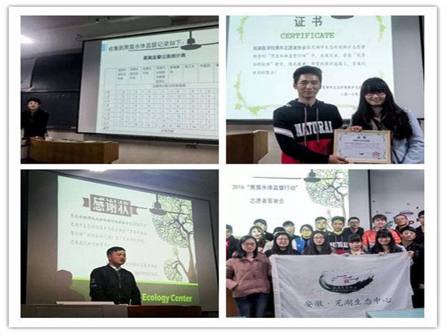 3月18日,环境与健康协会在花津校区举办了黑臭水体监督整治行动志愿者答谢交流会。会上,芜湖生态中心徐文平老师总结了2016年各高校公益社团黑臭水体监督整治行动成果;八个高校学生社团的项目负责人也分享了黑臭水体监督整治行动的心得体会并就工作难点进行交流。未来环境与健康协会将采用更专业的方式去推动黑臭河污染监督整治,更好地应对芜湖本地的水环境问题。
