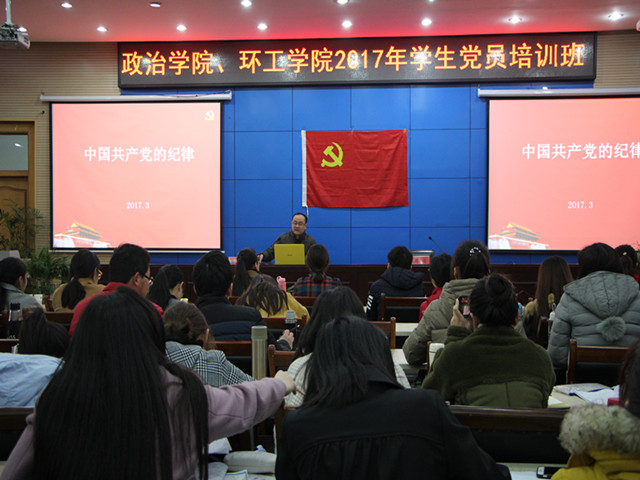 本网讯(环工学院分党校)3月18日下午,在圆形报告厅二楼,马克思主义学院副教授郭理老师应邀为环工学院、马克思主义学院学生党员教育培训班,作主题为“中国共产党的纪律”专题授课。本期党校的全体学生党员到场参加学习。