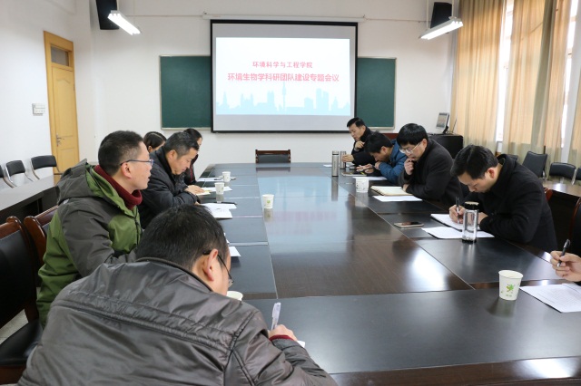 左胜鹏首先汇报了研究团队前期的准备情况,提出了团队建设思路和初拟研究方向。周守标和杨如意分别就团队建设的重要性和必要性,以及确定研究方向的几点依据和原则做了说明。与会教师结合国家政策和环境产业发展需求、团队现有研究基础和研究领域等发表了各自的观点和看法,并提出了修改意见和建议。经过激烈讨论,会议就三个研究方向达成了共识。即方向一、土壤环境生物学:土壤重(类)金属、有机污染物及新兴污染物环境毒理学及其植物-微生物联合修复机制;方向二、水环境生物学:水环境生态修复与保护机制、污水生物学处理的理论与应用;方向三、资源与废弃物综合处置与利用:生态敏感区生物多样性保育、固体废弃物处置与利用。