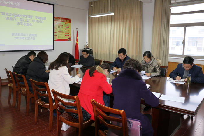 本网讯(环工学院党委)为深入学习贯彻党的十八届六中全会精神,深化“两学一做”学习教育,12月7日下午,环工金沙城js9线路检测中心召开“讲看齐、见行动”学习讨论动员布置会。学院党委委员、全体党支部书记参加了会议。会议由学院党委书记王峰主持。