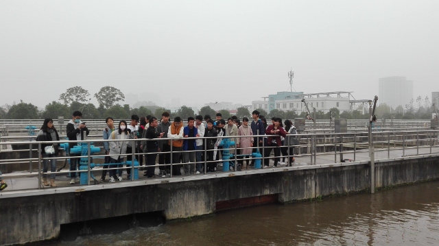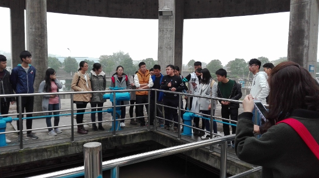 参观过程中,污水处理厂技术人员向同学们详细介绍了污水处理的工艺流程、工艺原理、处理装置,带领同学们参观了氧化沟,粗格栅、进水泵房、细格栅、旋流沉泥池、储泥池、二沉池、污泥浓缩、污泥消化及污泥脱水等主要处理构筑物,使同学们了解了污水的净化过程。同学们一边聆听工程师讲解,一边认真观察,当看到浑浊的污水经过一系列复杂的流程最终变得清澈洁净后,同学们对污水处理的技术工艺赞叹不已。