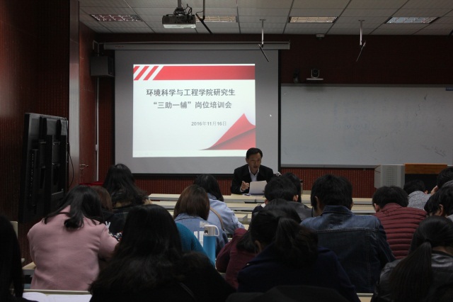 为深入贯彻落实《教育部关于做好研究生担任助研、助教、助管和学生辅导员工作的意见》(教研〔2014〕6号)文件精神,进一步加强研究生“三助”工作的过程管理,11月16日下午,环工学院在行政楼一楼会议室举行了2016年度研究生“三助一辅”岗前培训会,全体新聘研究生参加了培训,会议由科研副院长杨如意主持。