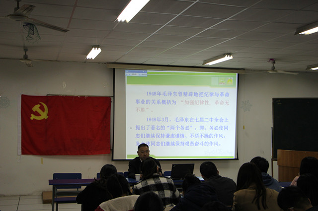 陈文兵指出,严密的组织和严格的纪律是中国共产党区别于其他政党最显著的特征之一,并且是坚持从严治党,确保党的纯洁性的必然要求,也是依法治国的鲜明体现。报告会中,他结合重大历史事件和历次中国共产党关于纪律细则、条例的修订、颁布以及反腐倡廉、纪律建设的进程,向学员们详细讲解了与党的纪律相关的理论知识。最后,他指出大学是青年学生心智成长的重要时期,校园文明直接折射出社会的文明,青年大学生要学会和懂得时间自律、学习自律、生活自律、交友自律、消费自律,遵守党的纪律。