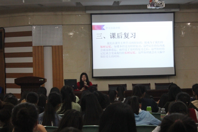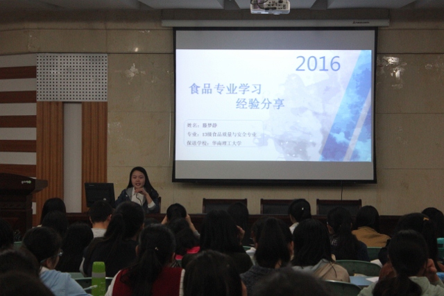 鸟欲高飞先振翅,人求上进先读书。分别被报送至南京大学、华南理工大学的陈晓和滕梦静,分享了各自专业各门课程的学习经验。她们从学习的重要性、学习态度、学习方法几个方面对大学阶段的学习做了深入地剖析,对同学们目前在专业学习上的一些困惑提出了自己的看法。报告现场气氛热烈,不时响起同学们自发的掌声。