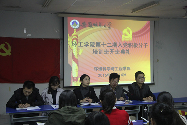 (环工学院 分党校)10月14日晚,环工学院第12期入党积极分子培训班开班典礼在学院实验楼201教室举行。学院党委书记、分党校校长王峰,党委副书记、分党校副校长杨友谊,各年级辅导员到场出席,90名学员参加了典礼。典礼由杨友谊主持。