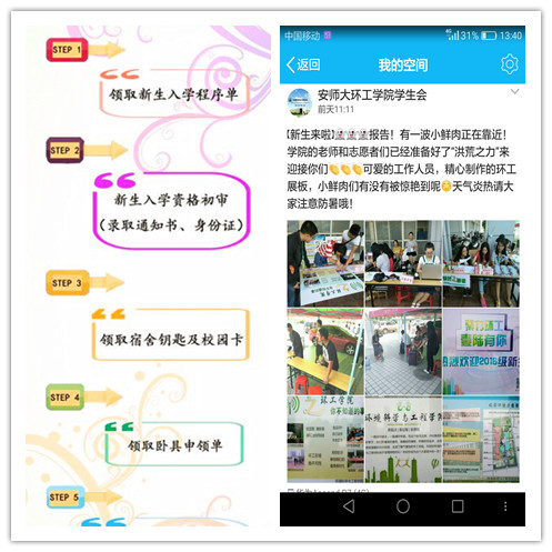 学院为打造高效便捷的报到服务,将新生报到程序简化为五个步骤:领取新生入学程序单、新生入学资格审核、领取宿舍钥匙及校园卡、领取卧具申领单、查看寝室分布图前往寝室,切实做到新生报到秩序井然、快捷迅速。现场的学生志愿者疏导前来报到的新生和家长,避免报到现场拥挤的情况。同时,学院不断地在我校环工微信公众号、学院团委微博等新媒体平台推出图文、迎新直播,详细介绍新生入学所需信息,以各种途径确保将所有报到注意事项推送到每一位新生。