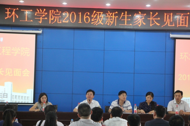 学院党政领导高度重视2016级新生入学工作,深入迎新现场、深入学生宿舍。9月3日上午,学院党委书记王峰、院长周守标、党委副书记杨友谊、副院长杨如意,深入迎新现场指导迎新工作,深入新生宿舍看望新同学、与家长亲切交流、答疑解惑,并送上学院真诚的祝福。9月3日下午,学院在第三报告厅召开了环工学院2016级新生家长见面会,学院党委书记王峰,院长周守标,党委副书记杨友谊,副院长杨如意和昝逢宇出席,新生辅导员、2016级全体新生家长参加会议。会上,学院院长周守标向全体新生家长介绍了院史院情,同时向在座的新生家长送上学院最美好的祝愿。学院党委副书记杨友谊详细介绍了学生工作,并希望家长配合和支持。随后,学院领导与学生家长进行了活动,现场解答了部分家长提出的问题和疑惑。9月3日晚上,新生辅导员在2016级新生班会上着重强调了安全和纪律要求,并对入学初期班级工作做了布置。