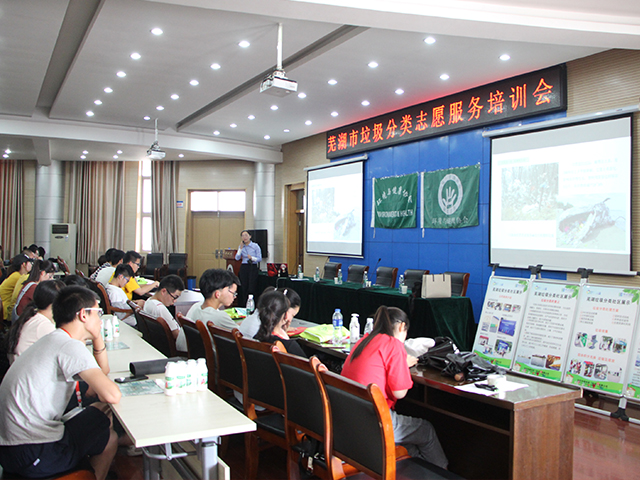 仪式结束后,200名志愿者于圆形报告厅参与了芜湖市城市管理局组织的的垃圾分类志愿服务培训会,通过有奖竞答、案例分析等方式让同学们走进垃圾分类。志愿者们纷纷表示受益良多,以后必将从身边小事做起,参与垃圾分类,共建美丽中国。
