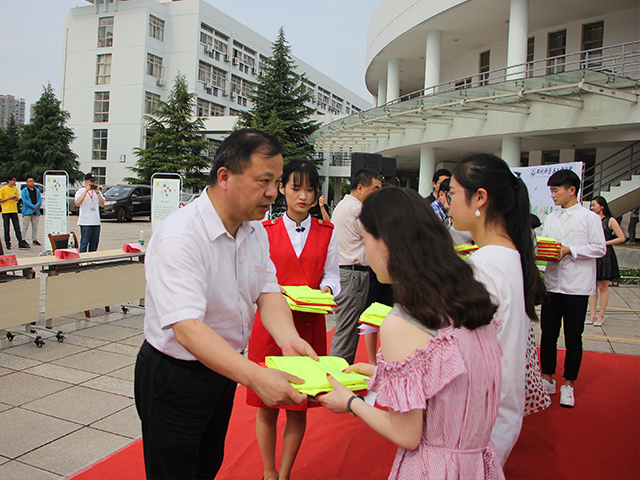 仪式最后,芜湖市城市管理局副局长陈开宏、芜湖市传媒集团党委委员高成、安徽师范大学团委副书记汪凯为20名志愿者颁发证书和马甲。
