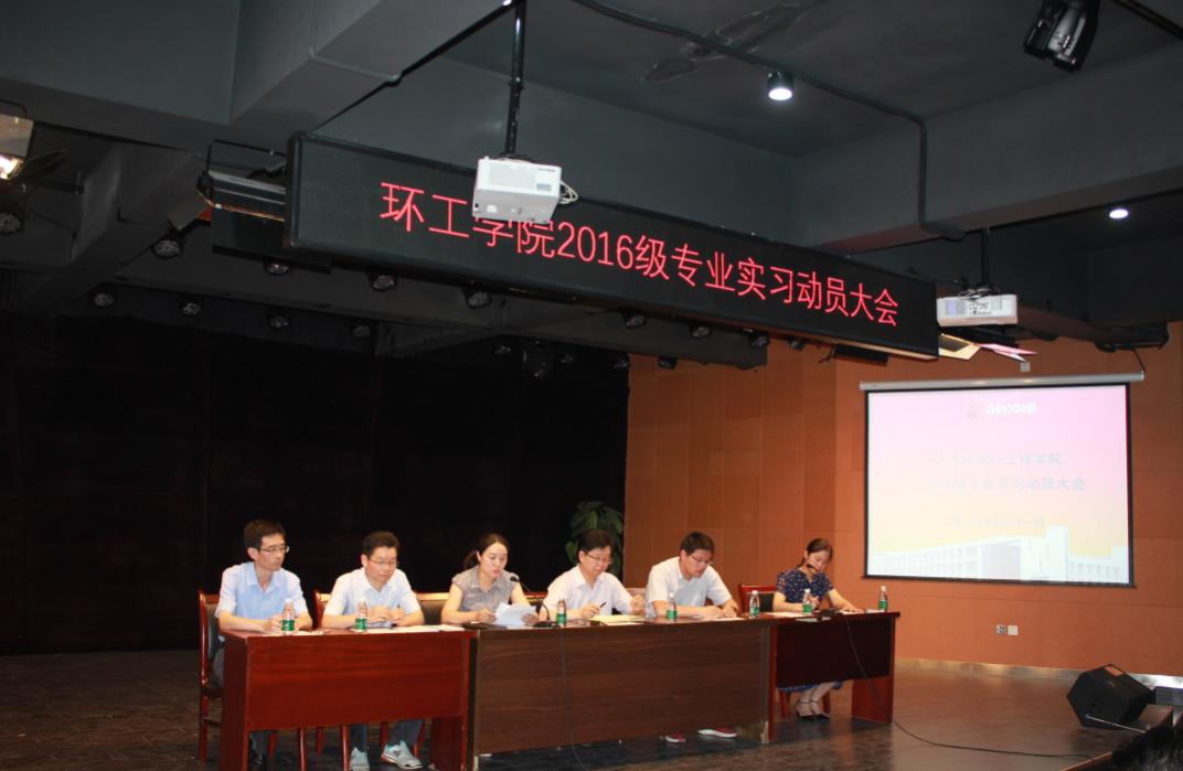 为做好2016级本科生专业实习工作,切实提高实践教学质量,6月11日,环境科学与工程学院在大学生活动中心二楼团委多功能报告厅召开了2016级本科生专业实习动员大会。院党委书记王峰、党委副书记杨友谊、教学副院长昝逢宇、专业负责人、实习指导教师代表、2016级辅导员、2016级全体本科生参加了大会。会议由杨友谊主持。