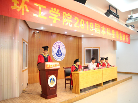 (本网讯\环工学院)6月11日晚七点,环工学院2019届本科生毕业典礼在花津校区大学生活动中心三楼就业报告厅隆重举行。学院党政领导、教授委员会成员出席了典礼,专业负责人、教师代表、学生工作组全体成员、2019届本科毕业生参加典礼。典礼由院党委书记王峰主持。