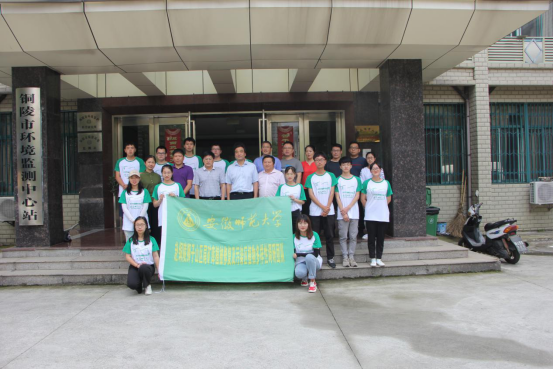 会上,安徽师范大学环境科学与工程学院院长周守标、铜陵市生态环境局副局长朱承宽为安徽师范大学暑期社会实践基地揭牌,与会人员在铜陵市生态环境监测中心站办公大楼前合影留念。