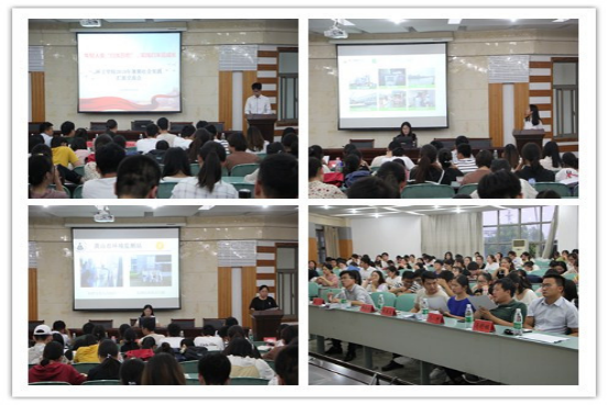 本网讯(环工学院 冯玉麒)青春心向党,建功新时代。9月18日晚,环境科学与工程学院在财务二楼报告厅举行了2019年大学生“三下乡”暑期社会实践评比汇报暨“年轻人要‘自找苦吃’——实践归来话成长”总结交流会。环工学院党委副书记杨友谊、环境专业马舒坦老师、食品专业孙柯老师、团委副书记郑合庆,2018级辅导员袁成应邀出席并担任评委。24支实践团队参加此次评比汇报会,各团队成员及2018级学生骨干300余人听取了汇报。