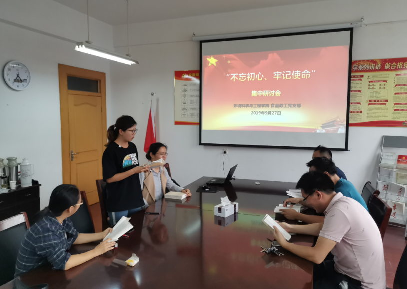 9月27日,值国庆来临之际,环境科学与工程学院食品专业教工党支部于三楼会议室召开“不忘初心,牢记使命”集中研讨会。支部全体党员参加本次研讨会。