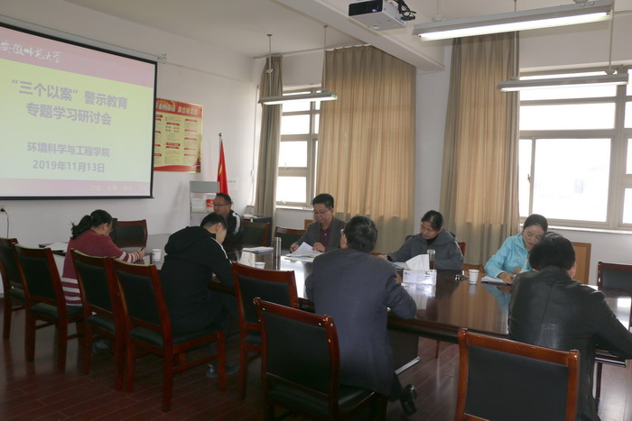 本网讯(环工学院 党委)2019年11月13日下午,环境科学与工程学院党委中心组召开了“三个以案”警示教育专题学习研讨会,学院党委委员、部分党支部书记参加了会议。