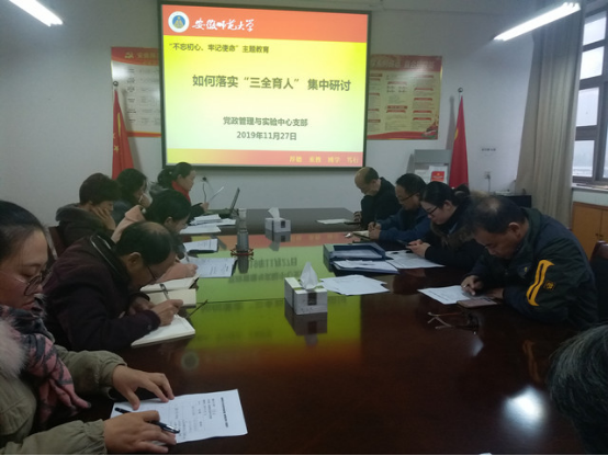 随后,与会党员围绕如何落实“三全育人”要求、加强作风建设、发挥管理服务育人作用展开了讨论。大家认为,立德树人是高校的根本任务,“三全育人”是落实立德树人理念的重要举措。教师自身要有理想信念、有道德情操、有扎实知识、有仁爱之心,坚持教书和育人相统一,坚持言传和身教相统一,努力做学生锤炼品格和学生学习知识的引路人。