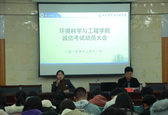 本网讯(环工学院 张云鹏 许楠)为教育引导同学们树立诚信考试的意识和公平竞争理念,同时为即将到来期末考试做好充分准备。12月11日下午,环工学院在财务处二楼报告厅召开了19级新生诚信考试动员大会。院党委书记王峰、党委副书记杨友谊、19级辅导员和全体新生参加了会议。会议由杨友谊主持。