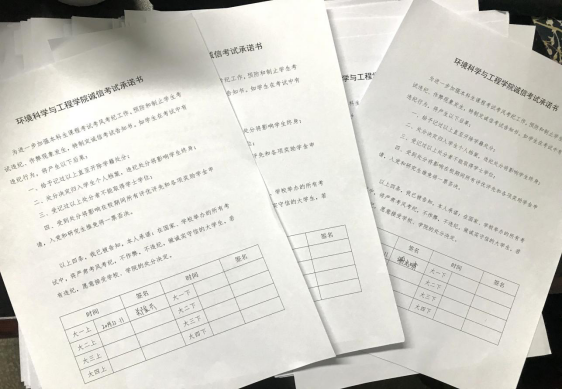 最后,学院发放了诚信考试承诺书,承诺书中详细地列出了考试违纪将产生的后果,同学们仔细阅读并郑重的签下了自己的名字。期末考试在即,希望同学们能够积极主动投入到复习迎考之中,做好充分准备,用实际行动营造文明诚信的考风考纪,用自己的努力为学期末画上圆满的句号,考出水平,考出风格。