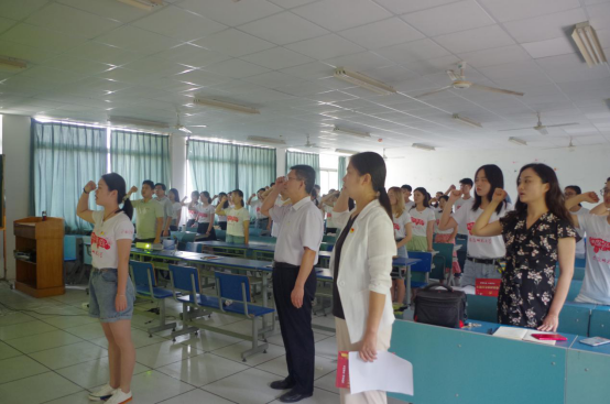 2.重温一遍入党誓词。为了教育引导广大毕业生党员铭记党员身份,增强党性修养,不忘初心,牢记宗旨使命,做文明离校的表率。全体党员同志在唐智鑫同志的带领下,面对党旗进行宣誓,重温一遍入党誓词。