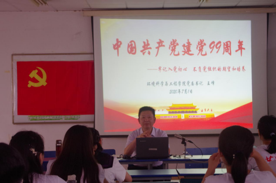 “学”—返校“第一课”,做好疫情防护。6月30日中午学院书记王峰通过腾讯会议以《践行初心使命,勇于担当作为—师生齐心协力,共同抗击疫情》为题作了专题报告,从“怎么看”、“怎么学”、“怎么做”三个方面阐述了面对疫情毕业生应有的责任意识与担当精神。专题党课团课,牢记使命担当。7月1日下午在实验楼201教室开展了2020届毕业班党员专题学习,学院书记王峰以《牢记入党初心,不负党组织的期望与培养》为题开展专题党课,同时为毕业生党员过集体“政治生日”,为每一名毕业生党员订制了“政治生日”贺卡,加强党性教育,强化使命担当。各毕业班团支部开展“2020毕业歌—青春为祖国绽放”主题团课,2016级食品质量与安全专业毕业生卫涛分享:“心有所信,方能行远,我校的四年时光教会了我只有坚守求学初心,才能不断创造新的精彩。”