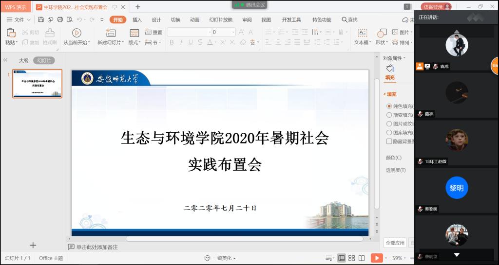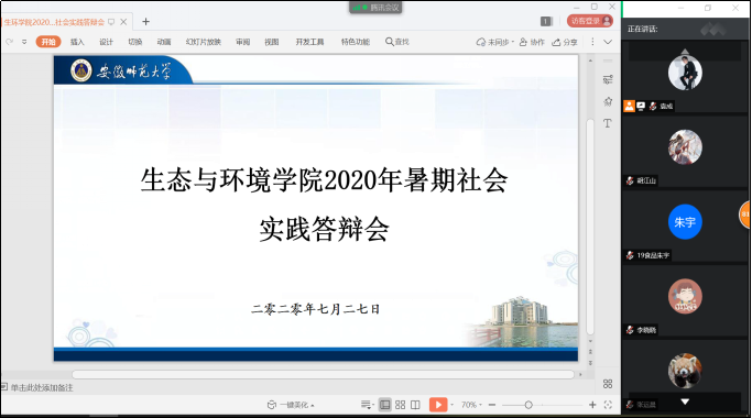 7月27日上午,生环学院2020年暑期社会实践团队答辩会通过腾讯会议平台在线上召开,共有15支团队参加了此次立项答辩会,团队负责人依次汇报了队伍的立项背景、人员构成、实践内容及流程、安全预案、经费预算等内容,各位老师就汇报内容给出意见和建议,帮助同学更好的完善和丰富工作方案和实践内容。