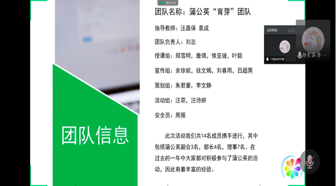 POE废气治理设备研发团队、环保“云宣讲”及垃圾分类调研团队、 蒲公英“育芽”团队、赴六安地摊经济助脱贫调研团队、新思想理论学习团队、生态文明学习与实践团队等,15支团队的实践课题丰富多样,既有结合专业理论知识的环保调研、食品调研实践队伍,也有理论学习、脱贫调研、社团教育、线上授课帮扶、民风民俗调研等实践队伍,实践课题丰富多样。
