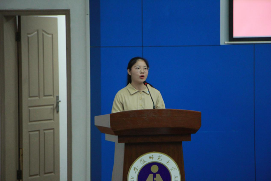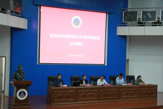 伴随着师生齐唱国歌,典礼拉开帷幕。环境科学与工程专业2020级新生王壮志同学代表新生发言,他表达了对迎新过程中对他照顾有加的老师同学的感谢,对自己在军训过程中难忘的体验与感受,对即将到来的大学生活的忐忑与憧憬,表示作为新时代的大学生更该朝气蓬勃的努力学习,为祖国建设添砖加瓦。2017级环境科学专业郭小红同学作为老生代表发言,她分享了自己的学习历程和取得成绩荣誉,用亲身经历鼓励新生树立远大目标,在大学四年的学习生活中艰苦奋斗、砥砺前行,做一个德智体美劳全面发展的新时代大学生。