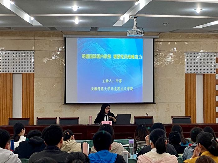 本网讯(文/吴雅洁 摄/张叶蕾)马院牛菲副教授应邀于财务处二楼报告厅为学生党员讲授“把握国际国内形势,增强党员战略定力”党课。金沙城js9线路检测中心与经管学院,马克思主义学院全体学生党员共同聆听了此次党课。