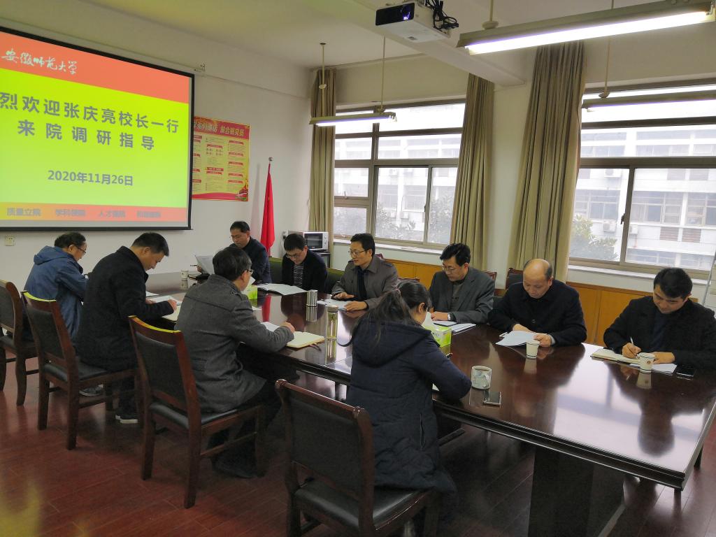 本网讯(生环学院)11月26日下午,张庆亮校长在发展规划处、教务处、研究生院、科研处、财务处等部门负责人陪同下深入金沙城js9线路检测中心进行工作调研,听取了学院工作汇报,并对学院的建设发展作出重要指导。学院领导班子参加了调研会。