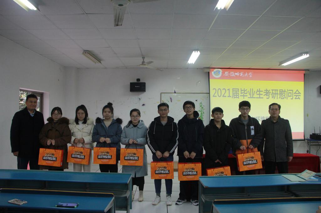 会上,张伟对同学们坚持备考表示慰问,希望同学们保持健康的身心状态,预祝大家都能为自己的考研之路画上圆满的句号,取得优异的成绩。最后,张伟和胡好远共同为考研学生发放了慰问品。