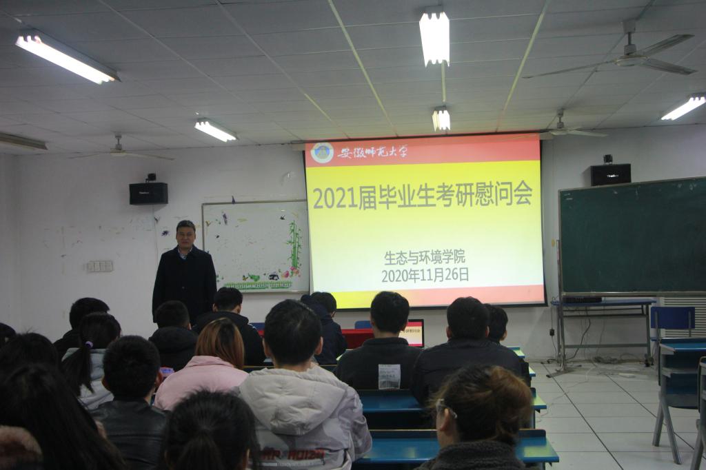 本网讯(生环学院 文/郭小红 图/付佳慧)为帮助2021届考研学子坚定信念,舒缓复习压力。11月26日,生环学院在实验楼201召开2017级考研冲刺慰问会。学院党委书记张伟、主持工作的副院长胡好远、2017级辅导员郑合庆与全体考研同学共话考研,为同学们送去冬日温暖。会议由张伟主持。
