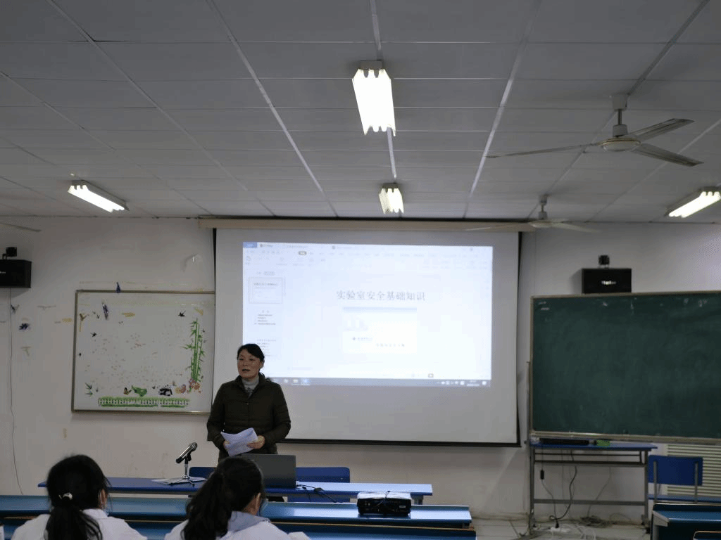培训前,同学们集中学习了实验室安全教育展板,了解危险化学品安全知识和近几年高校实验室安全事故警示。培训中,杨耿老师介绍了实验室安全基本知识、化学品安全、特种设备安全和实验室废弃物的安全管理四个方面的内容。从实验人员要求,实验室要求,消防安全,水电安全和仪器设备使用安全5个维度向同学们介绍实验室安全的注意事项,杨老师尤其强调凡是实验人员进实验室必须穿戴实验服和防护用具,离开实验室注意检查“水电气门窗”等细节,引导同学们将安全理念落实在细微之处,防患于未然。