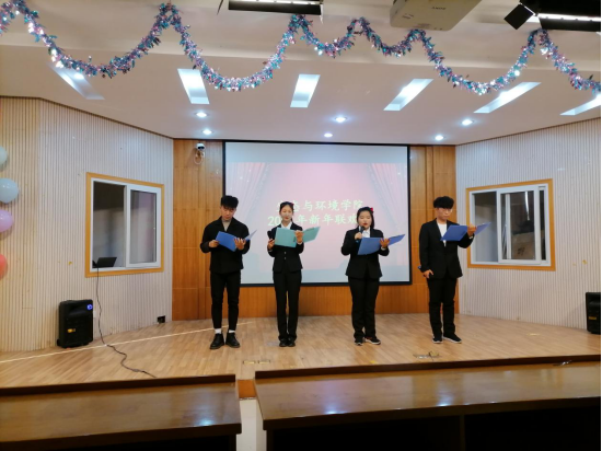 本网讯(生环学院 郑合庆)为欢庆新年,欢迎2020级新生,增强同学们的归属感,营造良好的文化氛围。学院于12月27日在大学生活动中心就业报告厅举行2021年新年联欢会。学院党委副书记杨友谊、环境工程专业负责人陶海升、辅导员郑合庆、袁成、屈亚舒、2019级、2020级本科生参加联欢会。