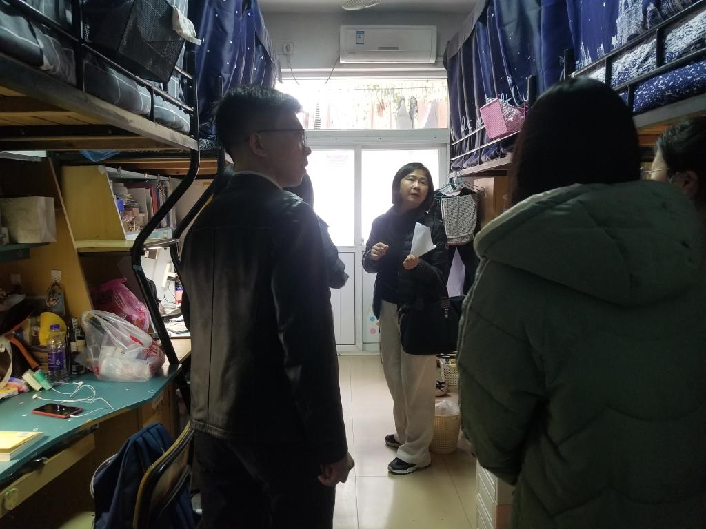 3月14-17日,学院党委副书记杨友谊带领辅导员深入学院所有学生寝室,了解学生寝室生活与卫生状况。在走访过程中,老师们详细了解了大家在日常学习、生活、工作等方面遇到的困难,并指出寝室是大家学习、生活的重要场地,要求各位同学要注意用电安全、保持良好的寝室卫生与寝室风气,营造有利于大家的学习成长的环境氛围。