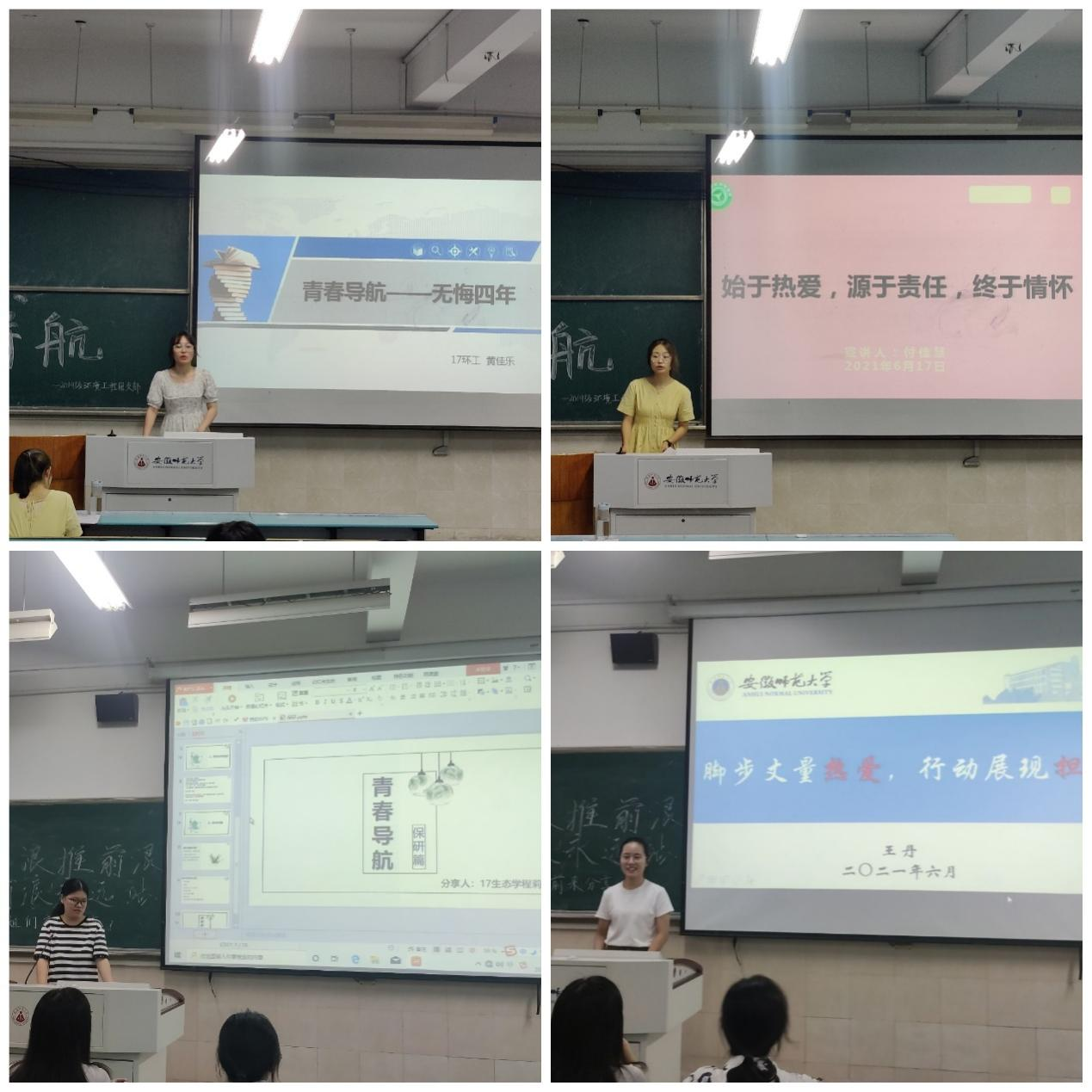 本网讯(生环学院)为充分发挥优秀大学生榜样示范引领作用,引导非毕业班学生学先进、当先进、超先进,形成“一人带动一批、一批影响一届”的良性循环。在2021届毕业生离校之际,学院邀请了11名在各方面表现突出的本科生党员,组建生环学院2021毕业生“青春导航”宣讲团,向2018-2020级本科生分享了各自精彩纷呈的青春故事。