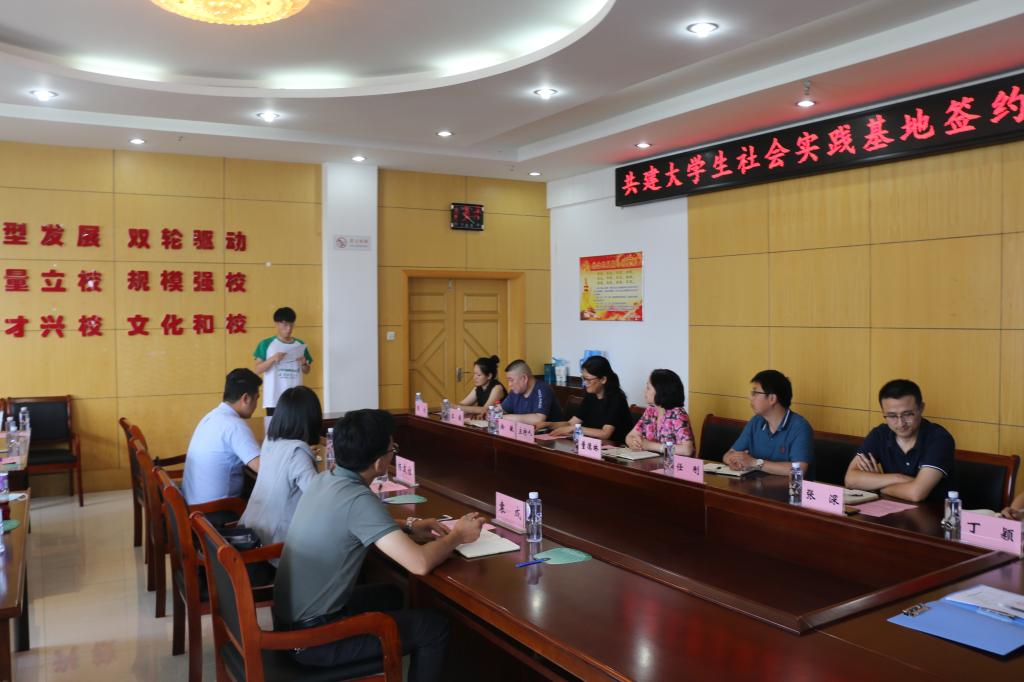 本网讯(生环学院 周振)7月19日,生环金沙城js9线路检测中心与芜湖市广播电视大学社会实践基地揭牌仪式在芜湖市电大综合楼9楼会议室举行。芜湖市广播电视大学党委委员副校长董德琳、社教处主任徐敏、办公室主任任刚、社教处副主任王毅、远教处副主任张深、教学处副主任丁颖、团委书记陈欣,生环学院党委副书记杨友谊、团委书记郑合庆、团委副书记袁成,两支赴芜湖暑期社会实践团队12名实践队员代表参加了此次会议。