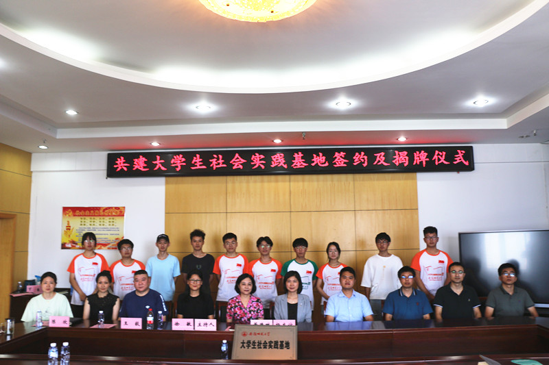 会上,杨友谊、董德琳为安徽师范大学暑期社会实践基地揭牌,签订实践基地共建协议,与会人员在芜湖市电大综合楼办公室合影留念。