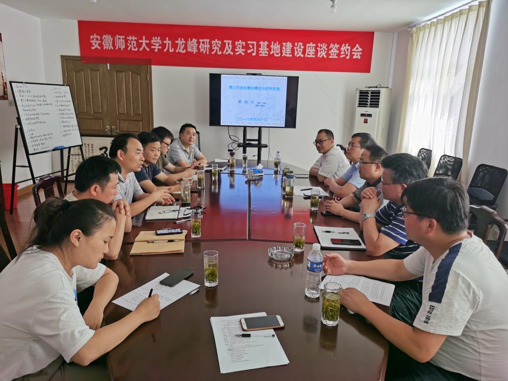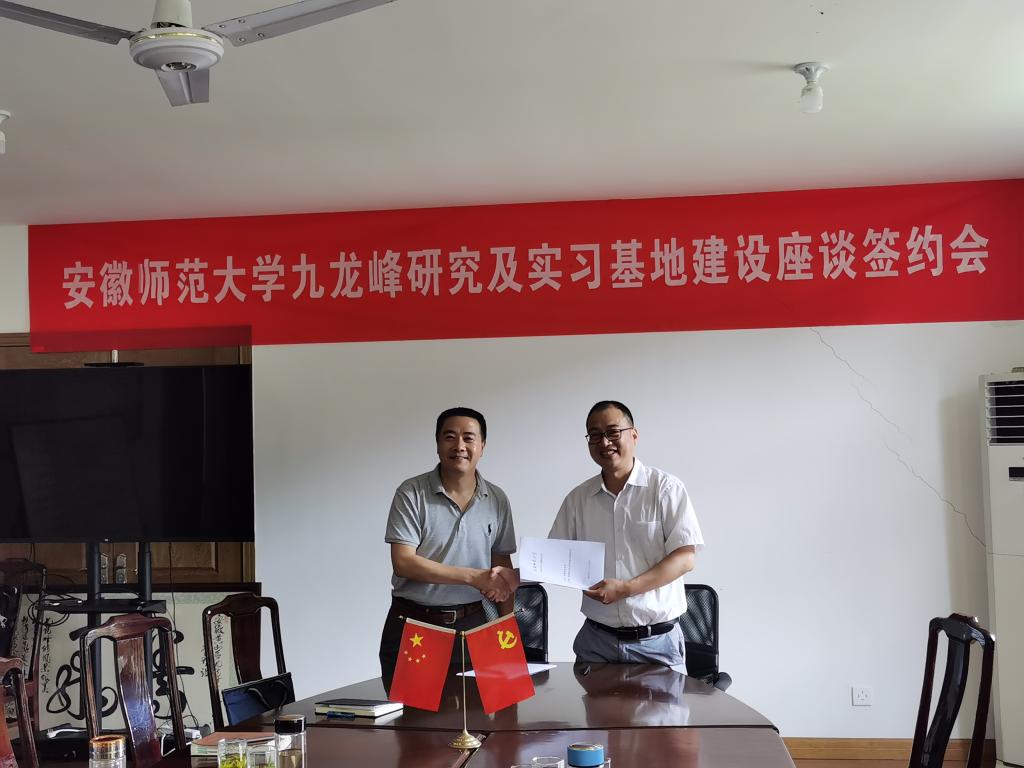 本网讯(生环学院)7月20日,学校与安徽黄山九龙峰省级自然保护区(以下简称保护区)举行共建专业实习就业基地协议签约暨揭牌仪式活动。黄山区林业局副局长刘骏、中国生态监测网络中心黄山监测站站长夏尚光、保护区管理站站长曹新华、黄山千鸟谷生态科技有限公司总经理熊学慧、黄山绿满江淮自然保护中心主任周翔,金沙城js9线路检测中心教务处副处长李汪根、实践科科长曹军、金沙城js9线路检测中心党委书记张伟、副院长甘为民、副院长严云志和生态学拔尖班专业负责人温新利参与签约暨揭牌仪式。签约暨揭牌仪式由保护区管理站副站长陈晓春主持。