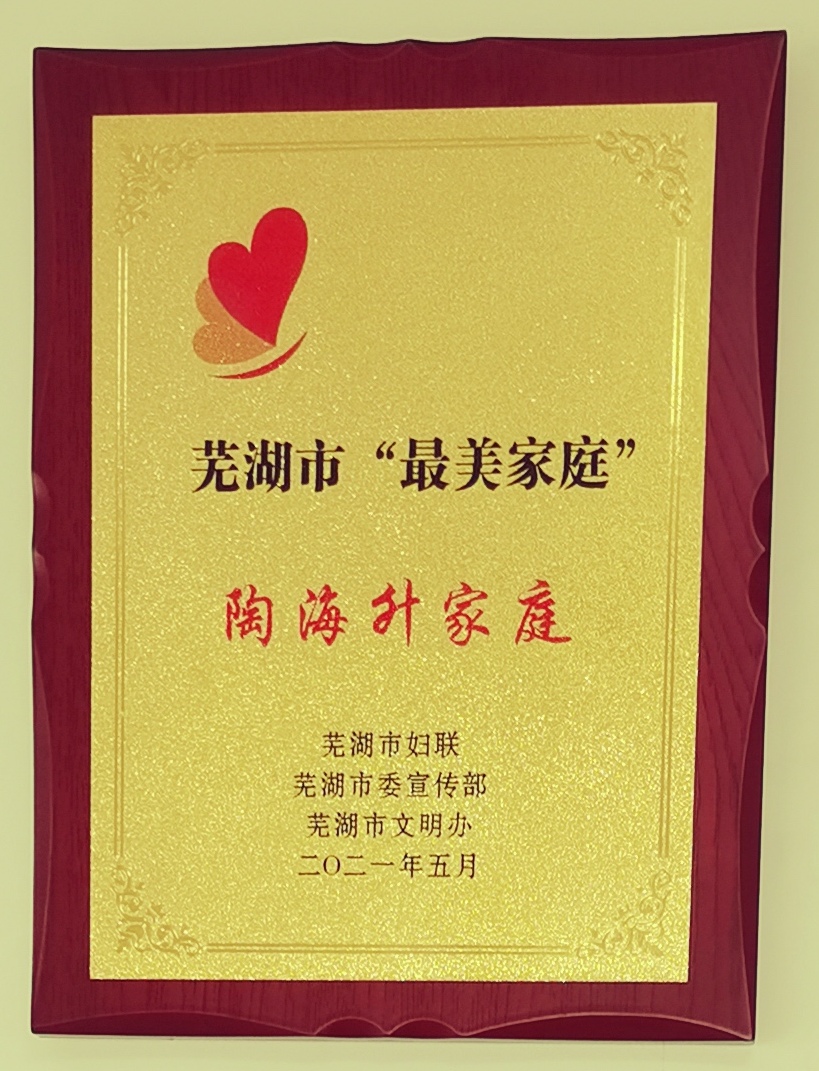日前,芜湖市妇联、市委宣传部和市文明办联合下文表彰2020年芜湖市“最美家庭”“最美婆媳”,金沙城js9线路检测中心陶海升老师家庭获芜湖市“最美家庭”表彰。