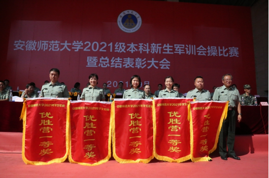 9月30日上午,安徽师范大学2021级本科新生军训会操比赛暨总结表彰大会在学校北侧田径场举行。在嘹亮的分列式进行曲中,学院2021级本科新生二团三营四个连队在会操队伍中最后出场,同学们高喊口号,以铿锵有力的步伐经过主席台,展现出积极向上、团结奋进、爱国爱校的精神面貌。