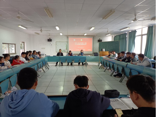 本网讯(生环学院 王梓)为及时了解新学期学生思想动态,倾听学生心声,解决同学们在学习、生活中所遇到的实际困难,学院于10月21日下午在实验楼201教室召开了2021-2022学年第一学期学生思想情况调研座谈会。学院党委书记张伟、院长胡好远、党委副书记杨友谊、辅导员王梓、本科生和研究生各年级37名学生代表参加座谈会。