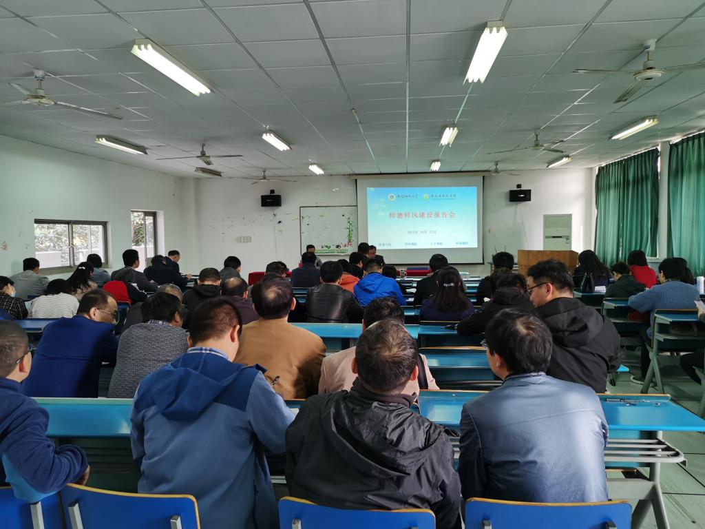 本网讯(生环学院 卫正梅)10月27日下午,金沙城js9线路检测中心在学院实验楼201教室召开教职工大会,开展师德专题教育,邀请安徽师范大学出版社总编辑、副社长、教授、博士生导师戴兆国作了题为《大学老师的使命和担当——读书·教书·写书》的报告。学院全体教职工参加了报告会,报告会由学院党委书记张伟主持。