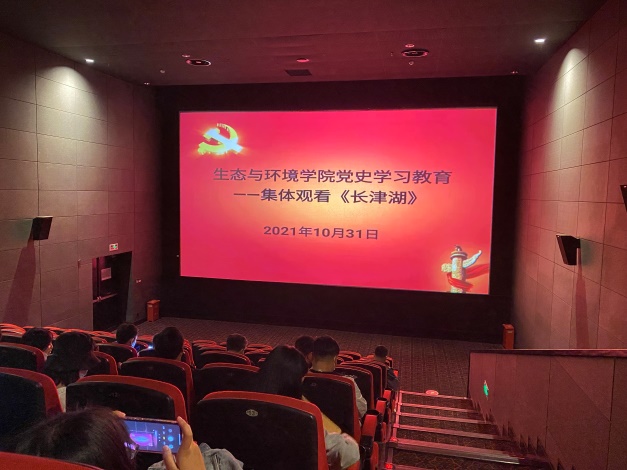 参观结束后,教工党员和研究生党员集体观看了红色影片《长津湖》。影片以长津湖战役为背景,讲述了一个志愿军连队在极度严酷环境下坚守阵地奋勇杀敌,为长津湖战役胜利作出重要贡献的感人故事,大写了中华民族的不屈精神,诠释了以“爱国主义精神、革命英雄主义精神、革命乐观主义精神 、革命忠诚精神、国际主义精神”为核心的抗美援朝精神。