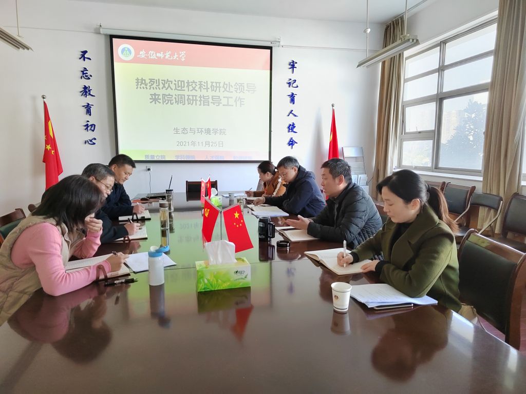 会上,昝逢宇汇报了学院年度国家自然基金、相关奖项申报准备情况和相关工作进展情况。胡好远介绍了学院科研工作整体情况,人才引进情况、青年教师导师制实施情况以及科研工作中存在的不足和困难。徐彬肯定了学院的科研工作,指出在基金和奖项申报上,要做到应报尽报,坚持紧盯申报重点、难点,加强前期梳理、整体设计和全程指导,拓展合作联合申报,努力提高学院科研工作质量水平,并介绍了学校科研绩效奖励办法的修订情况。张伟感谢科研处一行深入一线调研指导工作,表示学院将在过去工作基础上进一步做好科研工作,争取高级别项目、高水平成果的新进展,希望科研处进一步加强对学院工作的指导和支持。